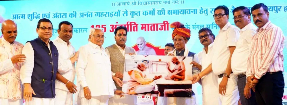 रायपुर। मुख्यमंत्री विष्णु देव साय आज राजधानी रायपुर में सकल दिगम्बर जैन समाज द्वारा आयोजित मैत्री महोत्सव में शामिल हुए. पंडित दीनदयाल उपाध्याय ऑडिटोरियम में पूज्य आर्यिकारत्न 105 अंतर्मति माताजी ससंघ के मंगल सान्निध्य में आयोजित गुरु शरणम् – मैत्री महोत्सव – क्षमादान उत्सव में विधायक राजेश मूणत, जैन समाज के पदाधिकारियों सहित बड़ी संख्या में गणमान्य नागरिक उपस्थित थे. मुख्यमंत्री साय ने मंच पर पूज्य आर्यिकारत्न 105 अंतर्मति माताजी ससंघ को श्रीफल भेंटकर आशीर्वाद प्राप्त किया. कार्यक्रम में जैन समाज की पारंपरिक पगड़ी और गमछा पहनाकर मुख्यमंत्री का सम्मान किया गया. इस अवसर पर मुख्यमंत्री ने विभिन्न क्षेत्रों में उत्कृष्ट कार्य करने वाले व्यक्तियों को सम्मानित किया और आचार्य विद्यासागर कल्याण सेवा संस्था के लोगो का विमोचन भी किया.मुख्यमंत्री विष्णु देव साय ने कहा कि मैत्री महोत्सव केवल एक आयोजन नहीं, बल्कि आत्मिक जागृति और शुद्धिकरण का पावन अवसर है. भारत की पुण्यभूमि केवल सभ्यता और संस्कृति की जननी ही नहीं, बल्कि आध्यात्मिकता की जीवंत प्रयोगशाला भी रही है. यहाँ धर्म केवल पूजा तक सीमित नहीं है, बल्कि जीवन जीने की कला है.