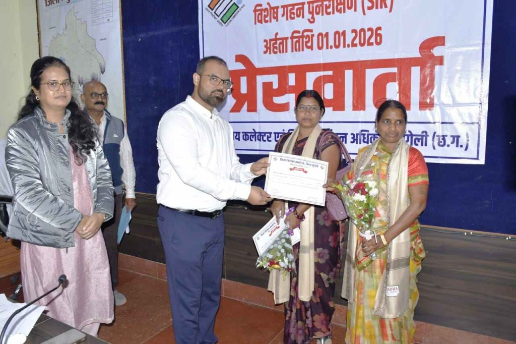 SIR अभियान : प्रदेश में मुंगेली जिला अग्रणी, कलेक्टर कर रहे मॉनिटरिंग, खुद गणना प्रपत्र भी भरा, शत प्रतिशत डिजिटाइजेशन पर बीएलओ सम्मानित