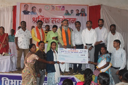 रायपुर। छत्तीसगढ़ शासन श्रम विभाग के निर्देशानुसार श्रमिक सम्मेलन-2026 का आयोजन उत्तर बस्तर कांकेर जिले के सामुदायिक भवन अंतागढ़ में किया गया। इस अवसर पर मुख्य अतिथि के रूप में लोकसभा क्षेत्र कांकेर के सांसद श्री भोजराज नाग उपस्थित थे तथा कार्यक्रम की अध्यक्षता नगर पंचायत अंतागढ़ के अध्यक्ष श्री राधेलाल नाग द्वारा की गई। कार्यक्रम में छत्तीसगढ़ भवन एवं अन्य सन्निर्माण कर्मकार कल्याण मंडल एवं छत्तीसगढ़ असंगठित कर्मकार राज्य सामाजिक सुरक्षा मंडल के अन्तर्गत विभिन्न जन कल्याणकारी योजनाओं से जिले के श्रमिक व उनके परिवार के सदस्यों को डायरेक्ट बेनिफिट ट्रांसफर (डी.बी.टी.) के माध्यम से राशि हस्तांतरित कर लाभान्वित किया गया।
