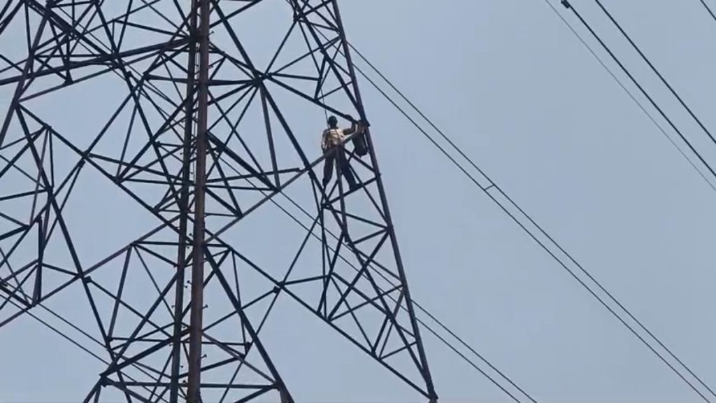 जमीन पर कब्जे से परेशान किसान हाइटेंशन टावर पर चढ़ा, फैक्ट्री प्रबंधन पर अवैध कब्जे का लगाया आरोप